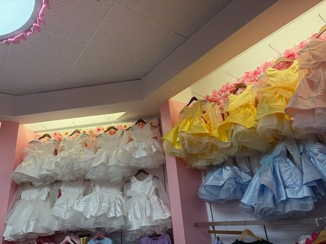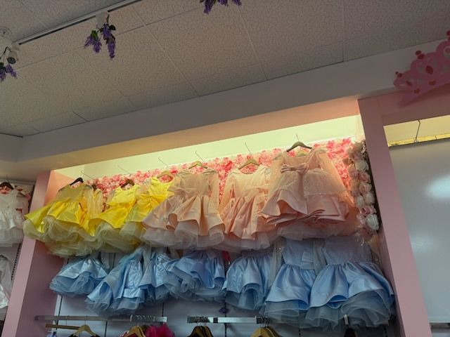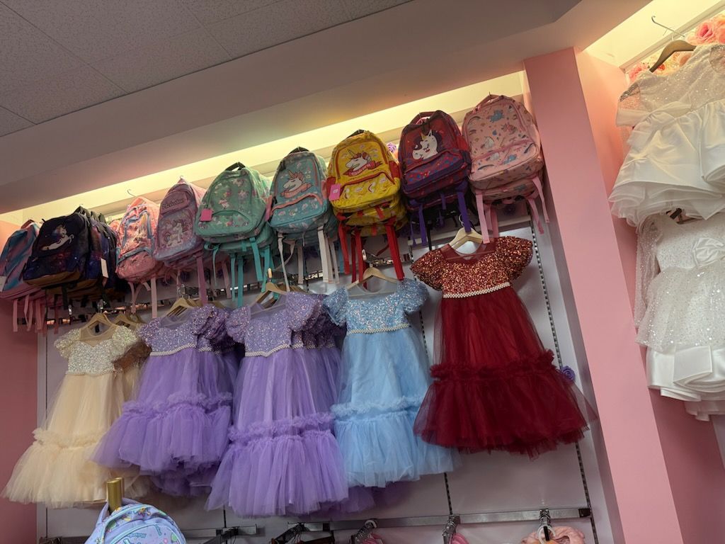 • The inside of a children 's clothing store with a lot of clothes on display.